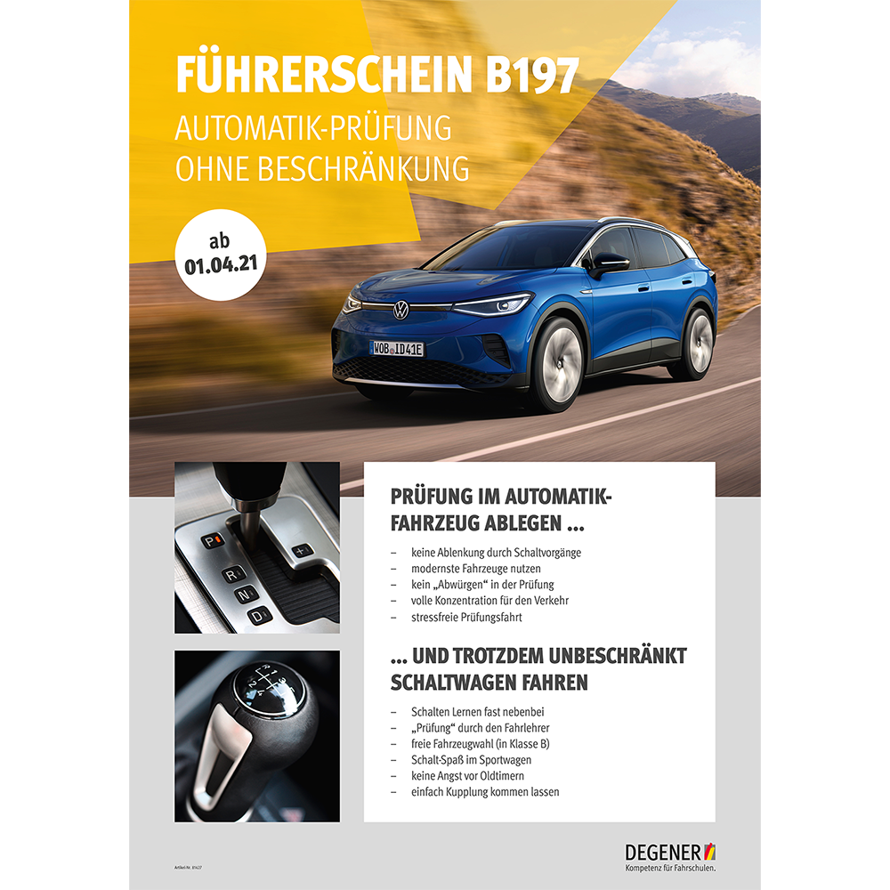 Ab dem 01.04.2021 dürfen Fahrstunde sowie die praktische Prüfung auf einem Fahrzeug mit Automatikgetriebe abgehalten werden, ohne den Sperrvermerk " nur Automatik " eingetragen zu bekommen.